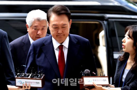 [사진공동취재단] 윤석열 전 대통령이 9일 서울 서초구 서울중앙지법에서 열린 직권남용 등 혐의 영장실질심사(구속 전 피의자 심문)에 출석하고 있다. 2025.07.09. 사진공동취재단