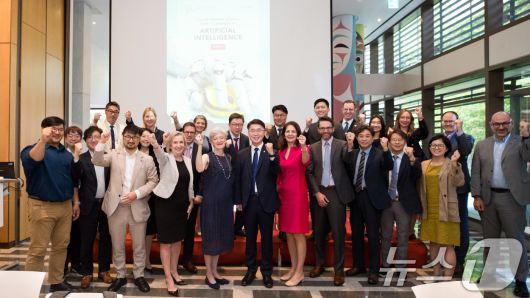 (서울=뉴스1) = 류제명 과학기술정보통신부 제2차관이 9일 서울 중구 주한캐나다대사관에서 열린 '제1차 한-캐나다 1.5트랙 첨단기술 대화, 인공지능(AI)'에서 참석자들과 함께 기념 촬영을 하고 있다. (과학기술정보통신부 제공. 재판매 및 DB 금지) 2025.7.9/뉴스1