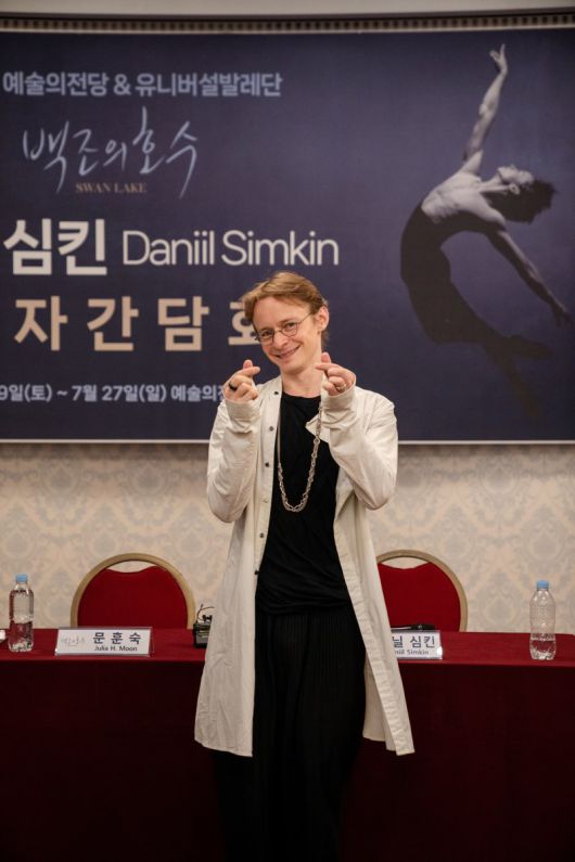 러시아 발레리노 심킨은 8일 서울 광진구 유니버설아트센터에서 열린 기자간담회에서 평소보다 1주일 빨리 방한해 연습 중이라며 “프리랜서 무용수로서 전막 공연 기회를 얻게 돼 감격스럽다”고 밝혔다.