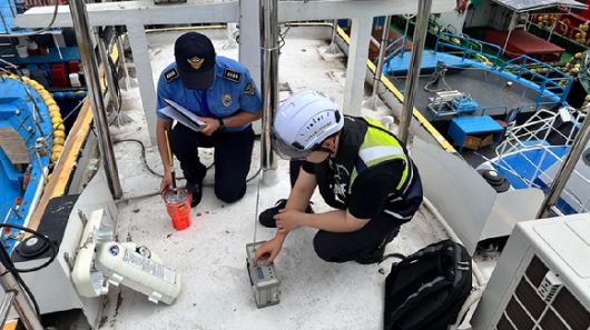 한국방송통신전파진흥원(KCA) 경인본부와 인천해양경찰서가 해양안전·조난 시 신속한 대응을 위한 EPIRB(비상위치지시용 무선표지설비) 합동점검을 실시하고 있는 모습. [사진=KCA] |
