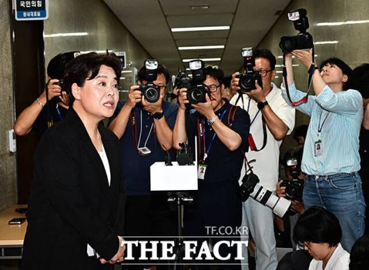 [더팩트ㅣ국회=배정한 기자] 윤희숙 국민의힘 신임 혁신위원장이 9일 오후 서울 여의도 국회에서 취재진의 질문에 답변하고 있다.