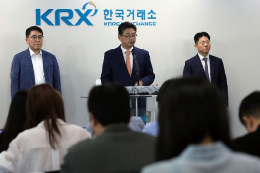 이윤수 금융위원회 증권선물위원회 상임위원(가운데)이 9일 오전 서울 여의도 한국거래소 브리핑룸에서 자본시장 불공정거래 근절 실천방안 합동브리핑을 하고 있다. 왼쪽부터 이승우 금융감독원 부원장보, 이 상임위원, 김홍식 한국거래소 시장감시위원장. /사진=뉴스1 |