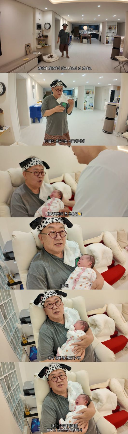 편한 듯 잠드는 이엘이와 달리 긴장한 표정으로 굳어버린 이용식은 "내가 심장이 뛴다. 내 자손이다. 처음으로 내 품에 (안겼다)"며 울컥한 모습을 보였다.
