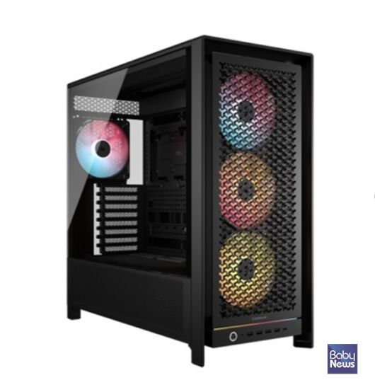 ‘프레임 5000D’는 데이지 체인 방식의 140mm RS 팬 4개를 기본 탑재, 화려한 ARGB 라이팅 버전 또는 절제된 non-RGB 버전으로 출시된다. ⓒ커세어 |