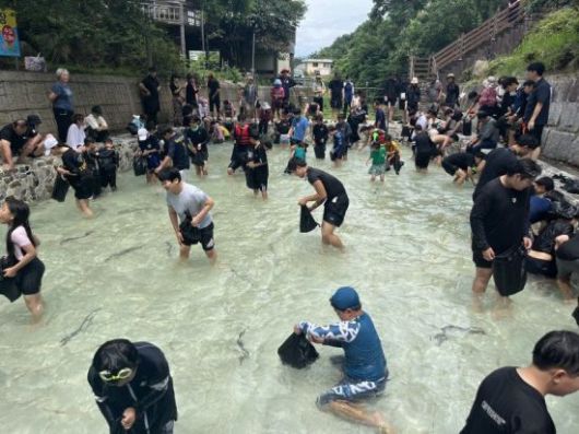 영암 월출산 기찬랜드 개장식이 오는 12일 현지에서 열린다. 사진은 지난해 맨손 장업잡기 체험 행사 모습.영암군 |