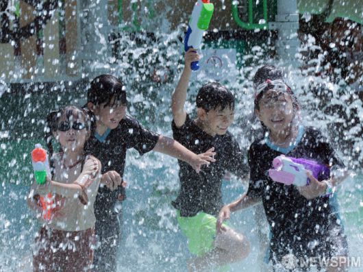 [서울=뉴스핌] 이길동 기자 =연일 37도가 넘는 폭염이 계속되는 가운데 9일 서울 종로구 도심 물놀이장에서 어린이들이 물놀이를 하며 더위를 식히고 있다. 2025.07.09 gdlee@newspim.com |