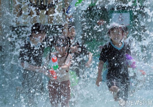 [서울=뉴스핌] 이길동 기자 =연일 37도가 넘는 폭염이 계속되는 가운데 9일 서울 종로구 도심 물놀이장에서 어린이들이 물놀이를 하며 더위를 식히고 있다..2025.07.09 gdlee@newspim.com |