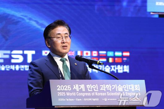 (서울=뉴스1) = 유상임 과학기술정보통신부 장관이 9일 서울 강남구 한국과학기술회관에서 열린 '2025년 세계 한인 과학기술인 대회' 개회식에 참석해 발언을 하고 있다. (과학기술정보통신부 제공. 재판매 및 DB 금지) 2025.7.9/뉴스1photo@news1.krCopyright ⓒ 뉴스1. All rights reserved. 무단 전재 및 재배포, AI학습 이용 금지.