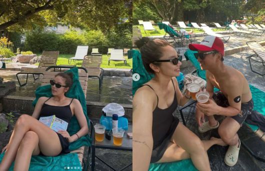 공개된 사진 속 손담비는 민소매 블랙 수영복 차림으로 야외 썬베드에 앉아 여유로운 시간을 보내고 있다. 한 손엔 맥주잔, 한 손엔 책을 들고 휴식을 즐기는 그의 모습은 한 폭의 화보 같은 분위기를 자아낸다. 작은 얼굴과 군살 없는 각선미는 출산 4개월 차라는 사실이 믿기지 않을 정도다.