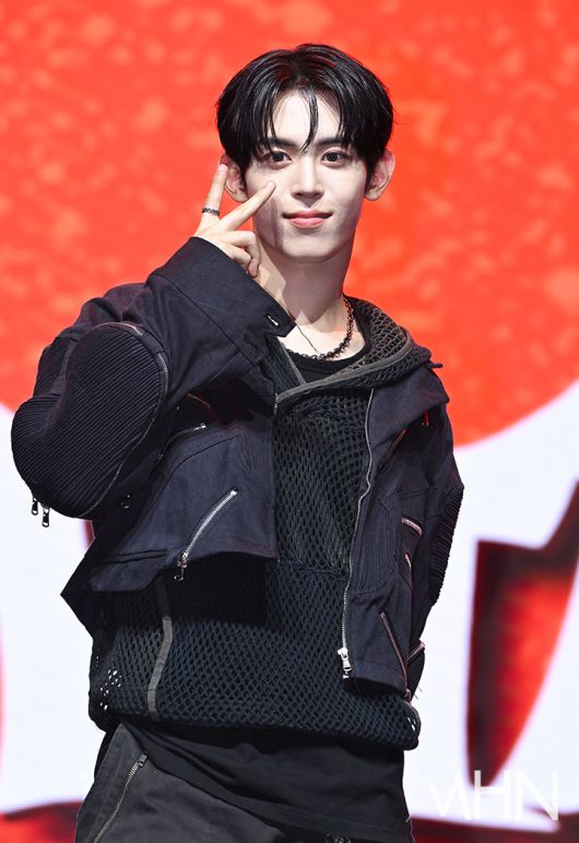 (MHN 이현지 기자) 그룹 나우즈(NOWZ) 현빈이 9일 오후 서울 광진구 예스24 라이브홀에서 진행된 첫 번째 미니 앨범 'IGNITION'(이그니션) 발매 기념 쇼케이스에서 포토타임을 갖고 있다.