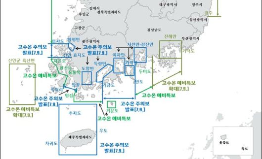국립수산과학원이 이날 서·남해 내만과 일부 연안 및 제주 연안에 고수온 주의보를 발표하자, 해양수산부도 고수온 위기경보를 ‘주의’단계에서 ‘경계’로 상향했다.