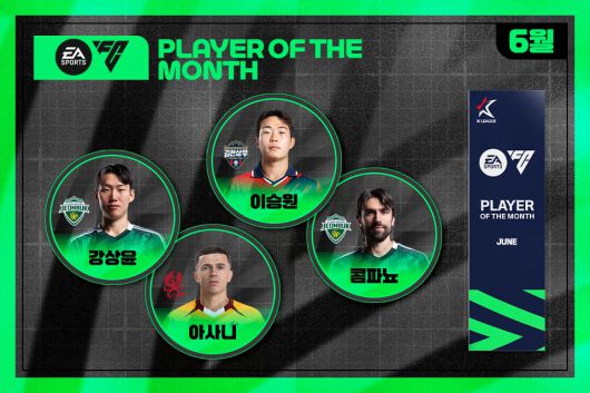 9일 한국프로축구연맹은 "6월 'EA SPORTS 이달의 선수상' 후보로 강상윤, 콤파뇨, 아사니, 이승원을 선정했다. 주인공을 선정하는 팬 투표는 10일부터 13일까지 진행된다"고 밝혔다.