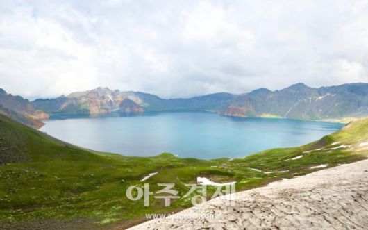 6월 27일 백두산 정상(북파)에서 바라본 천지의 모습. AJP 한준구 사진기자 |