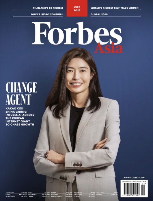 9일 IT업계에 따르면 포브스 아시아는 정 대표를 7월호 표지 인물로 선정했다. 그리고 AI를 통한 카카오의 대전환, 카카오의 첫 여성 CEO(최고경영자)인 정 대표의 리더십 등을 담은 인터뷰를 커버스토리로 게재했다.