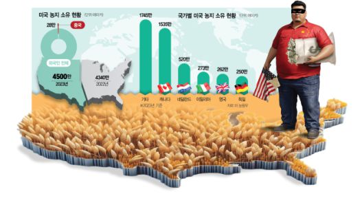 중국인이 사들이는 농지 규모가 커지면서 이들의 토지 매입 문제는 미국 정치권에서 주요 안보 이슈로 떠오르고 있다. 이들이 보유한 미국 농지는 약 28만 에이커(약 1130㎢, 2023년 기준)에 달한다. LA 면적(1210㎢)과 맞먹는 규모다. 전체 외국인 보유 농지(4500만 에이커)에서 비중이 크지는 않지만 군사시설 등 보안을 요구하는 지역 인근의 땅을 사들이는 사례들이 등장하면서 미 정부 당국의 우려가 커졌다는 평가다.