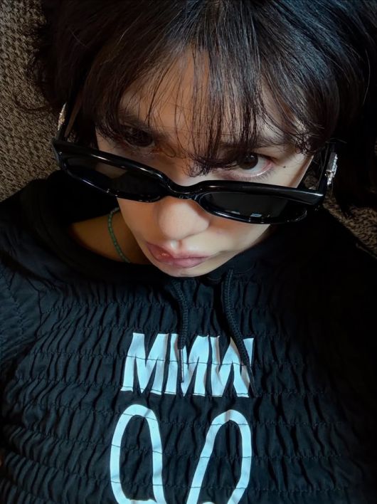 내추럴한 단발 웨이브과 동시에 검정 선글라스로 포인트를 더했다.