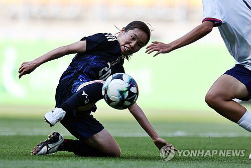 (수원=연합뉴스) 윤동진 기자 = 9일 수원월드컵경기장에서 열린 2025 동아시아축구연맹(EAFF) E-1 챔피언십(동아시안컵) 여자부 일본 대 대만 경기. 일본 아이카와가 슛을 시도하고 있다. 2025.7.9