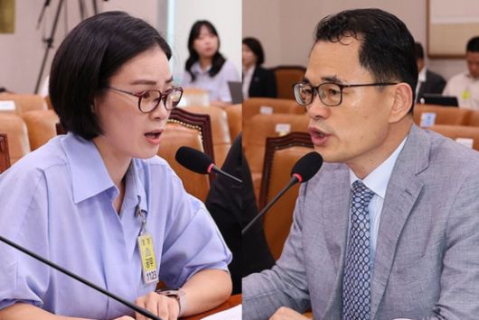 9일 국회 법제사법위원회 전체회의에서 열린 검찰개혁 법안 관련 공청회에서 김예원 변호사(왼쪽)와황문규 중부대 경찰행정학과 교수가 법안에 대한 각각의 의견을 진술하고 있다. 2025.7.9 [사진=연합뉴스] |