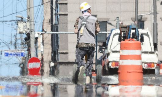 폭염이 계속되고 있는 9일 대구 한 공사장 인근에서 인부가 이동하고 있다. 연합뉴스 |