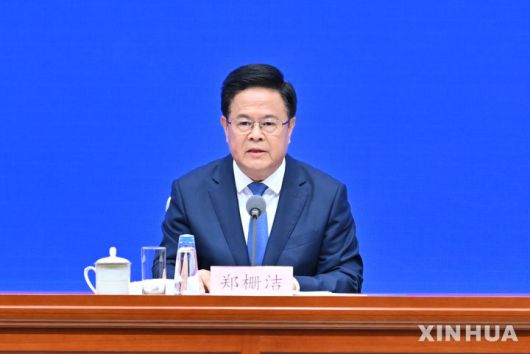 [베이징=신화/뉴시스] 정산제 국가발전개혁위원회(NDRC) 주임이 9일 베이징에서 열린 '제14차 5개년 계획' 성과 발표 기자회견에서 발언하고 있다. 2025.07.09 |