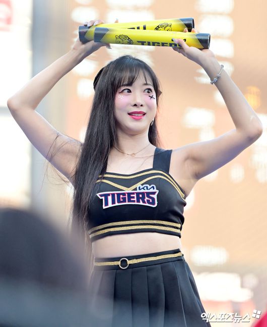(엑스포츠뉴스 대전, 김한준 기자) 9일 오후 대전 한화생명 볼파크에서 열린 '2025 신한 SOL Bank KBO리그' KIA 타이거즈와 한화 이글스의 경기, 김한나 치어리더가 열띤 응원을 선보이고 있다.김한준 기자 kowel@xportsnews.com