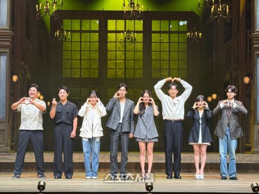 9일 연극 ‘셰익스피어 인 러브’ 프레스콜에서 (왼쪽부터) 임철형, 이규형, 이주영, 손우현, 박주현, 이상이, 김향기, 옹성우가 단체 사진을 촬영하고 있다. 사진 | 표권향 기자 gioia@sportsseoul.com |