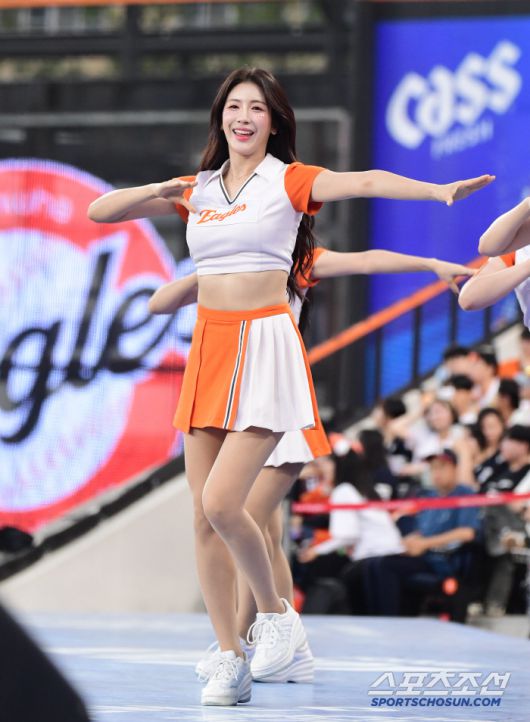 9일 대전 한화생명 볼파크에서 열린 한화와 KIA의 경기. 열띤 응원을 펼치고 있는 한화 치어리더 김연정. 대전=송정헌 기자songs@sportschosun.com/2025.07.09/