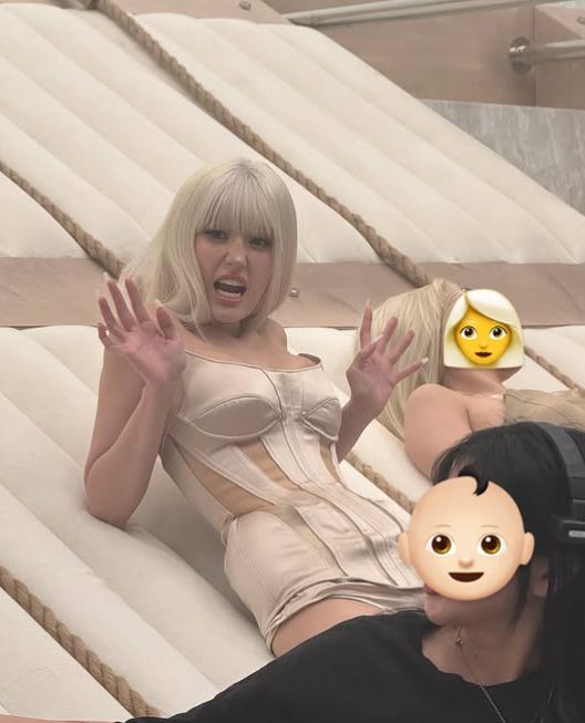 한 장의 사진에서는 촬영 준비 중 헤어스타일을 정돈하는 모습이 포착됐으며, 또 다른 사진에서는 여러 명의 스태프와 함께 무대 위에서 연출을 맞추는 장면이 그려졌다.