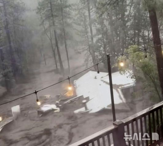 [산타페(미국)=ap/뉴시스] 김재영 기자 = 미국 뉴멕시코주 남부 산악지대의 인기 써머 휴양지에서 폭우로 인한 돌발 홍수에 집 한 채가 급류에 떠내려가 3명이 사망했다.