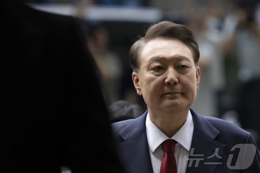 12·3 비상계엄과 관련해 특검의 수사를 받는 윤석열 전 대통령이 두 번째 구속 전 피의자심문(영장실질심사)를 받기 위해 9일 오후 서울 서초구 중앙지방법원으로 출석하고 있다. 2025.7.9/뉴스1 ⓒ News1 사진공동취재단 |