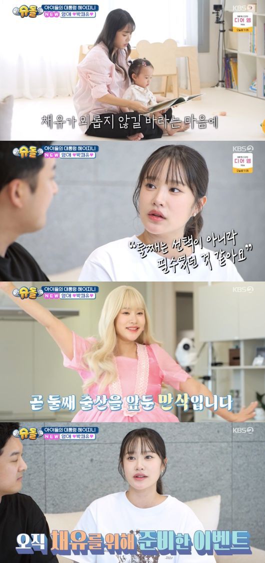 그렇게 고생하고도 둘째를 계획한 이유는 뭘까? 헤이지니는 “저는 채유를 낳고 나서 보니까 제가 약간 죽음에 대한 공포가 있는데 채유를 혼자 두고 죽는다고 생각하니까 이건 도저히 안 되겠더라. 둘째는 거의 선택이라 아니라 필수였던 것 같다. 저희 한테는”라고 밝혔다.