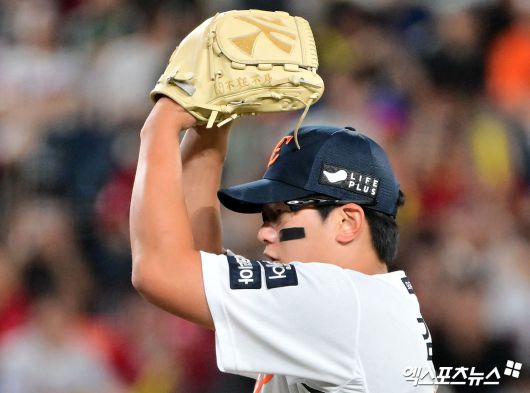 (엑스포츠뉴스 대전, 김한준 기자) 9일 오후 대전 한화생명 볼파크에서 열린 '2025 신한 SOL Bank KBO리그' KIA 타이거즈와 한화 이글스의 경기, 9회초 한화 김서현이 공을 힘차게 던지고 있다.김한준 기자 kowel@xportsnews.com
