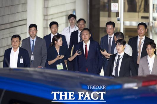 윤석열 전 대통령이 9일 서울 서초구 서울중앙지법에서 열린 직권남용 등 혐의 영장실질심사(구속 전 피의자 심문)를 마친 뒤 대기 장소인 서울구치소로 이동하기 위해 법원을 나서고 있다. /사진공동취재단 |