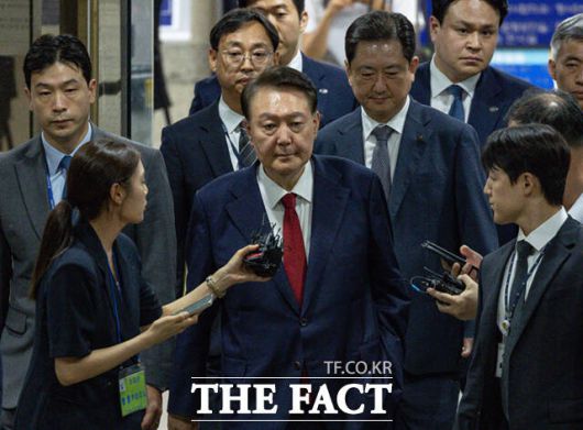윤 전 대통령은 이날 오후 2시 10분쯤 남색 정장에 빨간 넥타이를 매고 서울중앙지법 청사에 도착해 취재진 질문에는 아무런 답을 하지 않은 채 법정으로 향했다.