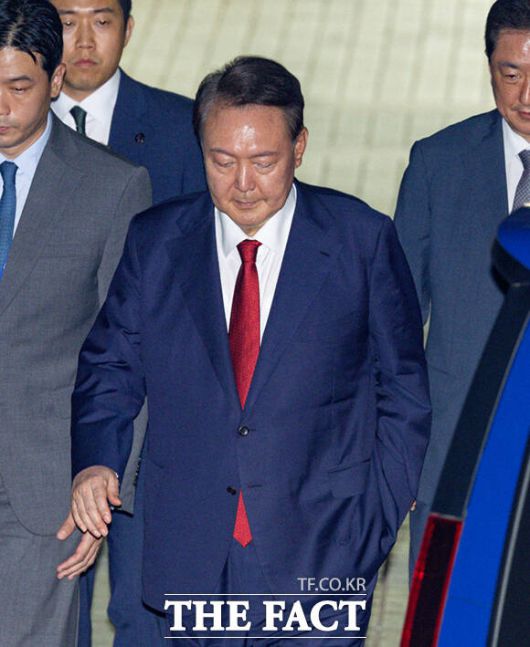 [더팩트ㅣ이새롬 기자] 12·3 불법 계엄 사태로 조은석 내란 특별검사팀의 수사를 받는 윤석열 전 대통령이 9일 오후 서울 서초구 서울중앙지방법원에서 열린 구속 전 피의자 심문(영장실질심사)를 마친 뒤 서울구치소로 향하고 있다.