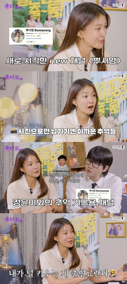 이용진은 "(아들) 정윤이 출연료는 어떻게 되냐"고 묻자 이시영은 "출연료는 평소에도 항상 주고 있다"며 "옷도 사주고 있고 학교 보내주고 있고"라고 너스레를 떨었다.