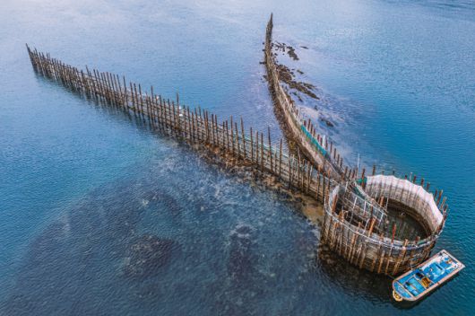9일 남해군 등에 따르면 500년 이상 전승된 죽방렴은 조류가 빠른 해역에 참나무 기둥을 세우고 대나무를 엮어 넣은 ‘V자형’ 구조물이다.