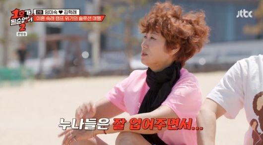 임미숙은 바닷가에서 김학래에게 업어달라고 졸랐다. 김학래는 못 이긴 척 업었지만 이내 넘어져버렸다. 임미숙은 "그걸 못 견디고 넘어지나"라며 "누나들은 잘 업어주지 않았나"라고 말해 김학래의 과거 외도를 언급했다.