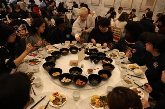 진관사 스님이 하버드 학생들에게 사찰음식을 설명하고 있다. [사진=한국관광공사] |