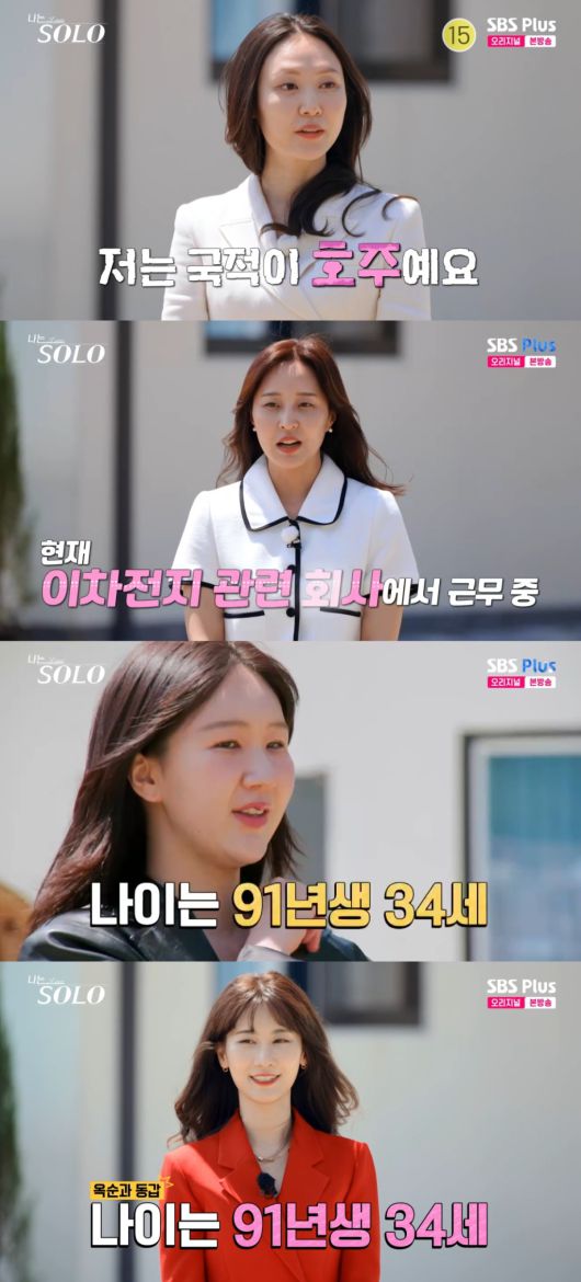 여성들의 소개도 이어졌다. 가장 먼저 등장한 영숙은 89년생으로 호주 국적이었다. 외국계 의료기기회사에서 근무 중이다. 이어 등장한 정숙은 92년생으로 현재는 포항에 거주 중이었다. 이차전지 관련 회사에 근무 중이라고 밝혔다.