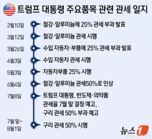 한국산 제품에는 지난 4월과 같은 25% 상호관세가 책정됐다.