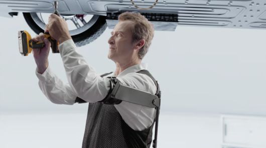 옷처럼 입는 식의 무동력 착용 로봇 엑스블 숄더는 반복적으로 위쪽을 봐야 하는 작업 환경에서 근로자의 어깨 근력을 보조해 근골격계 부담을 줄여 준다. 실제로 어깨 관절과 삼각근 부담을 각각 최대 60%, 30% 줄일 수 있는 것으로 조사됐다.