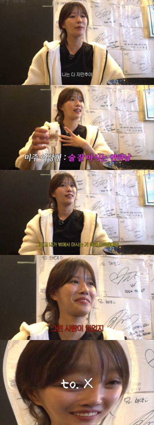 제작진은 "(술을 못 마시는 남친들이) 내가 밖에서 마시는 거 이해 못한다"고 말했고, 이미주는 "그런 사람이 있었지. 그럼 못 만난다"며 과거의 전 남친을 떠올렸다.