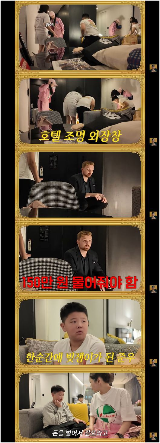 장영란은 이미 호텔에서 비용 청구를 할 것을 예감하고 있는 얼굴이었다. 장영란은 “이거 룸 차지한다는 거잖아. 준우 용돈으로 할 수밖에 없다”라며 준우에게 책임을 물었다. 장영란은 “200만 원 나오면 어떡할래? 준우 돈 200만 원 있어?”라고 물었다.