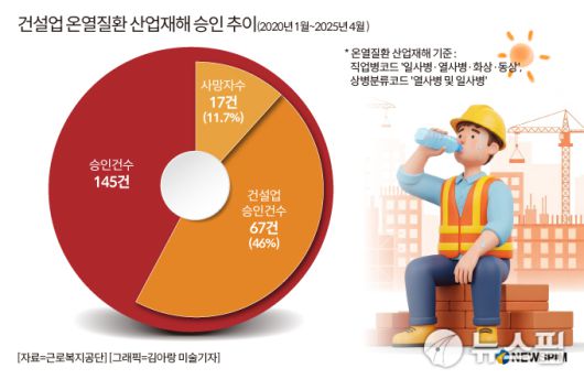 건설현장 온열질환 산업재해 승인 추이. [그래픽=김아랑 미술기자] |