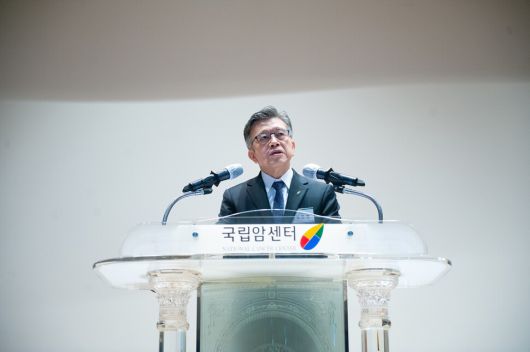 양한광 국립암센터원장이 지난 2일 국립암센터 설립 25주년 기념식에서 발언하고 있다. 국립암센터 제공 |