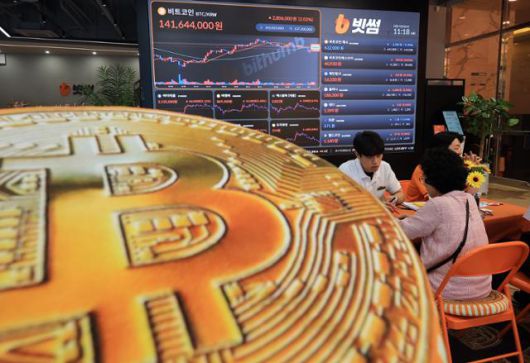 6월 서울 강남구 서초구 빗썸라운지 강남본점 전광판에 비트코인 거래 가격이 표시되고 있다. 뉴스1 |