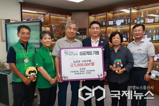 (영동=국제뉴스) 이재기 기자 = 충북 영동군 심천면의 이장협의회, 적십자봉사회, 새마을협의회, 체육회, 일심회 회장들이 10일 '2025 영동세계국악엑스포'의 성공적인 개최를 기원하며 입장권 500만원어치 사전 구매했다.