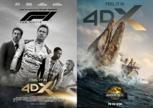 영화 ‘F1® 더 무비’와 ‘쥬라기 월드: 새로운 시작’의 4DX 포맷이 관객들의 사랑을 받고 있다. 영화 장면에 따라 움직이는 모션시트와 바람, 물, 진동 등 오감 효과를 더하는 4DX 특유의 체험 요소가 호응을 얻고 있는 가운데, 폭염이 지속되면서 극장이 피서지로 떠오른 것이다.