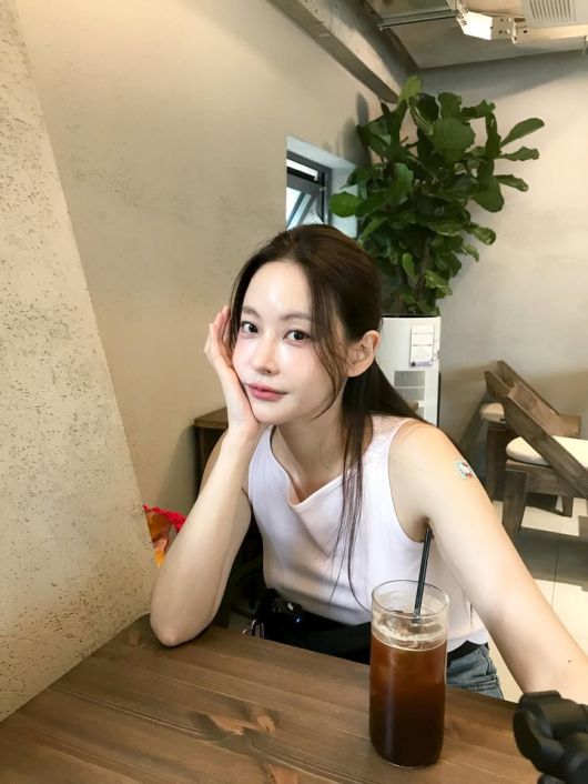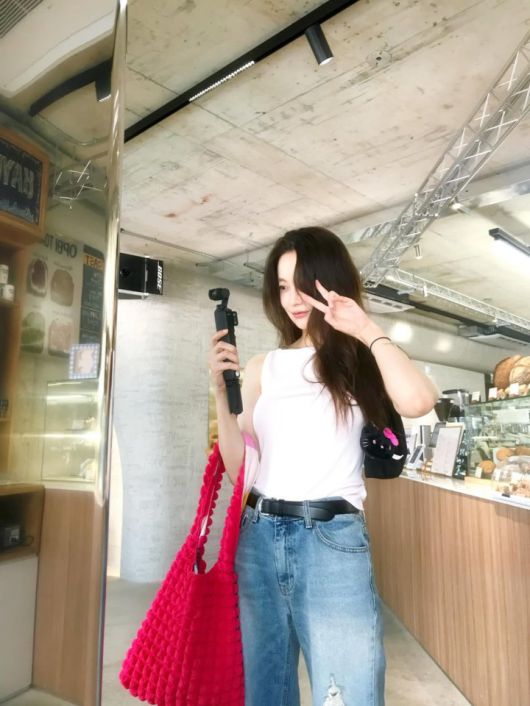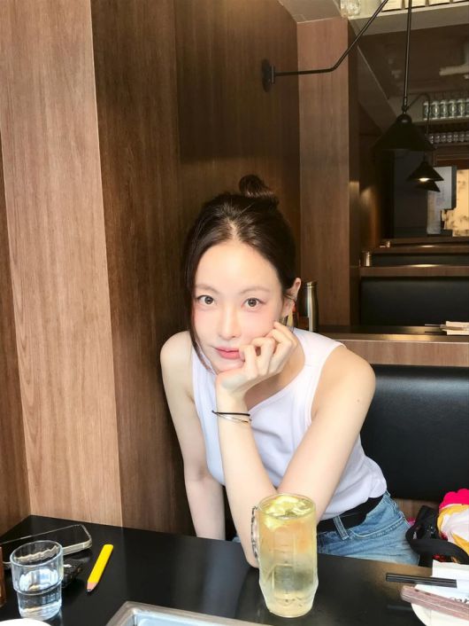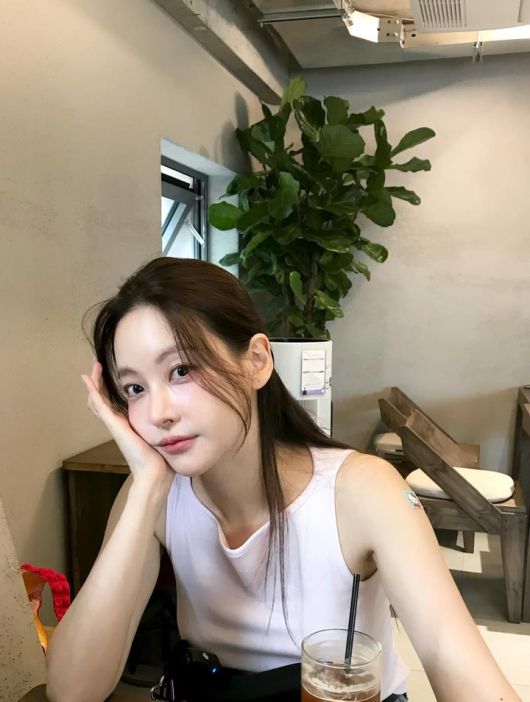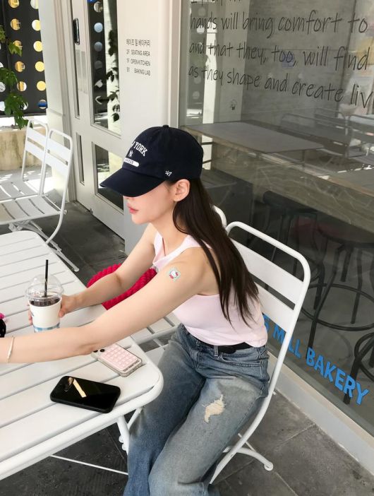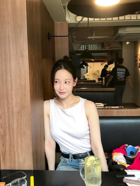 사진 속 오연서는 깔끔한 연분홍빛의 슬리브리스 탑에 연청 데님팬츠를 매치해 캐주얼하면서도 여성스러운 분위기를 완성했다.